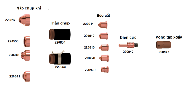 Đối với nguồn cắt dòng Powermax chúng ta thường sử dụng cho máy CNC đó là: POWERMAX45XP, POWERMAX65, POWERMAX85, POWERMAX105 các phụ kiện tiêu hao, thay thế thường sẽ là: