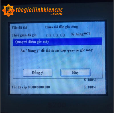 Bộ điều khiển khởi động xong sẽ hỏi “Quay về điểm gốc máy” các trục hay không?