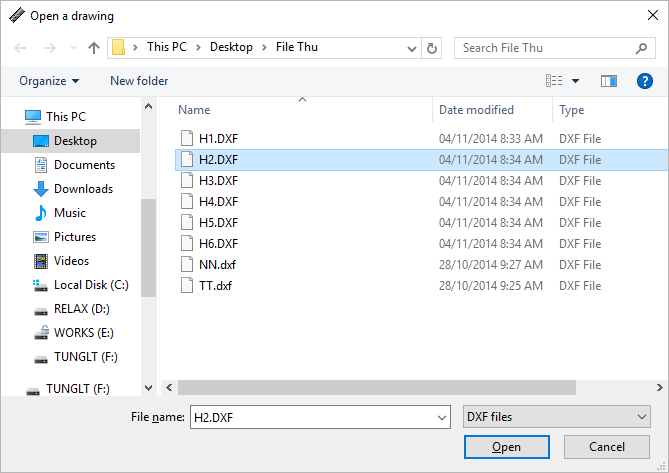 Bước 2: Chọn file cần mở, để phần mở rộng file là DXF
