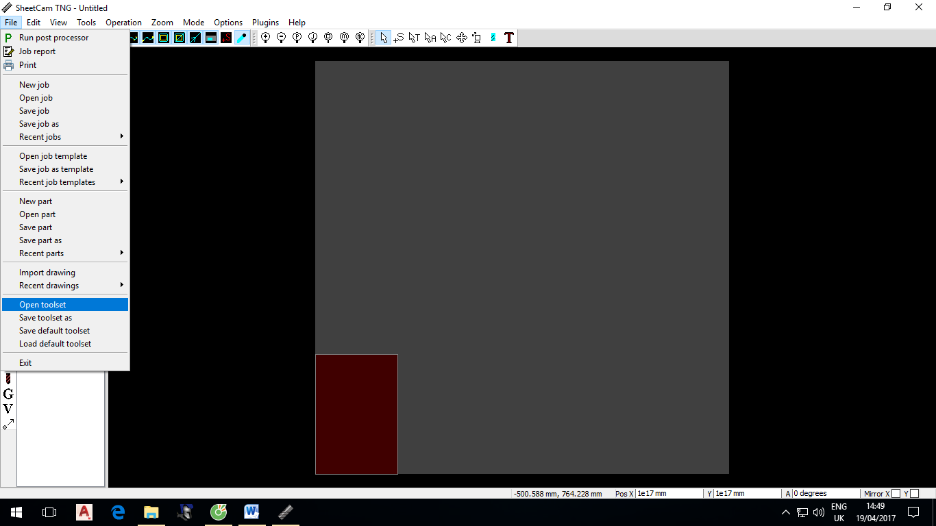 Chọn File->Open tool set. Sau đó chỉ đường dẫn đến thư mục chứa Sheet cam. Kick đúp trái chuột vào file Toolset